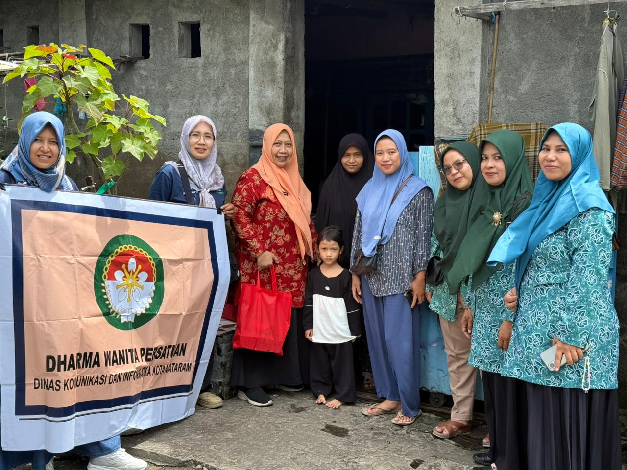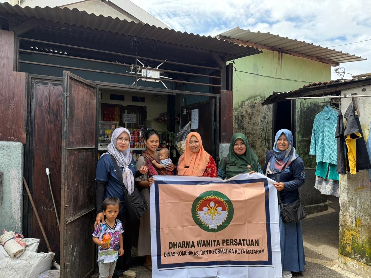 Mataram — Dharma Wanita Persatuan (DWP) Unit Dinas Komunikasi dan Informatika (Diskominfo) Kota Mataram menyalurkan bantuan bagi anak stunting serta ibu hamil dengan kondisi Kekurangan Energi Kronis (KEK) di empat lingkungan binaan Diskominfo yang berada di Kelurahan Abian Tubuh Baru, pada Jumat (14/11/2025).