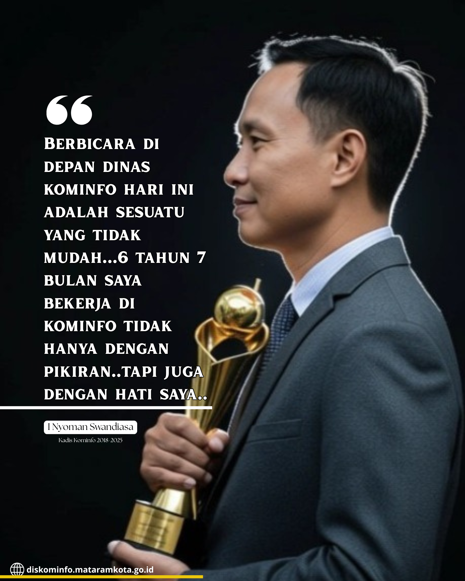“Berbicara di depan keluarga besar Diskominfo hari ini bukanlah hal yang mudah. Enam tahun tujuh bulan saya bekerja di sini, bukan hanya dengan pikiran, tapi juga dengan hati,” ucap Drs I Nyoman Suwandiasa, MH dengan suara bergertar dalam acara pisah sambut Kepala Diskominfo Kota Mataram.